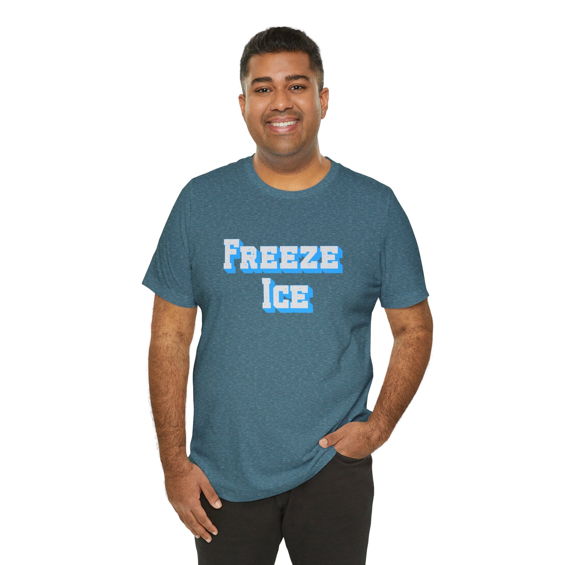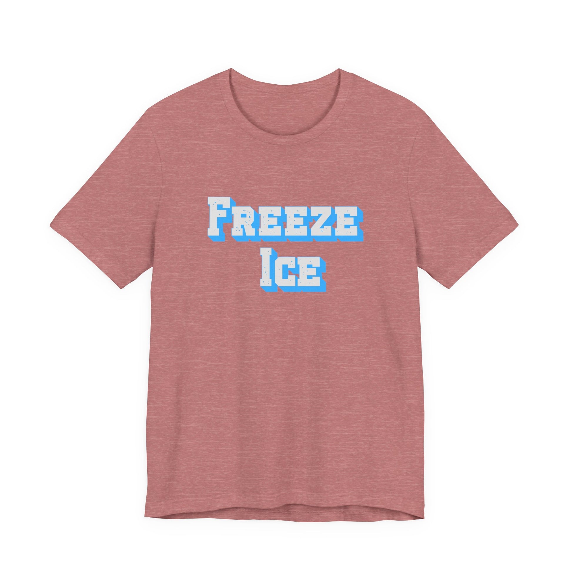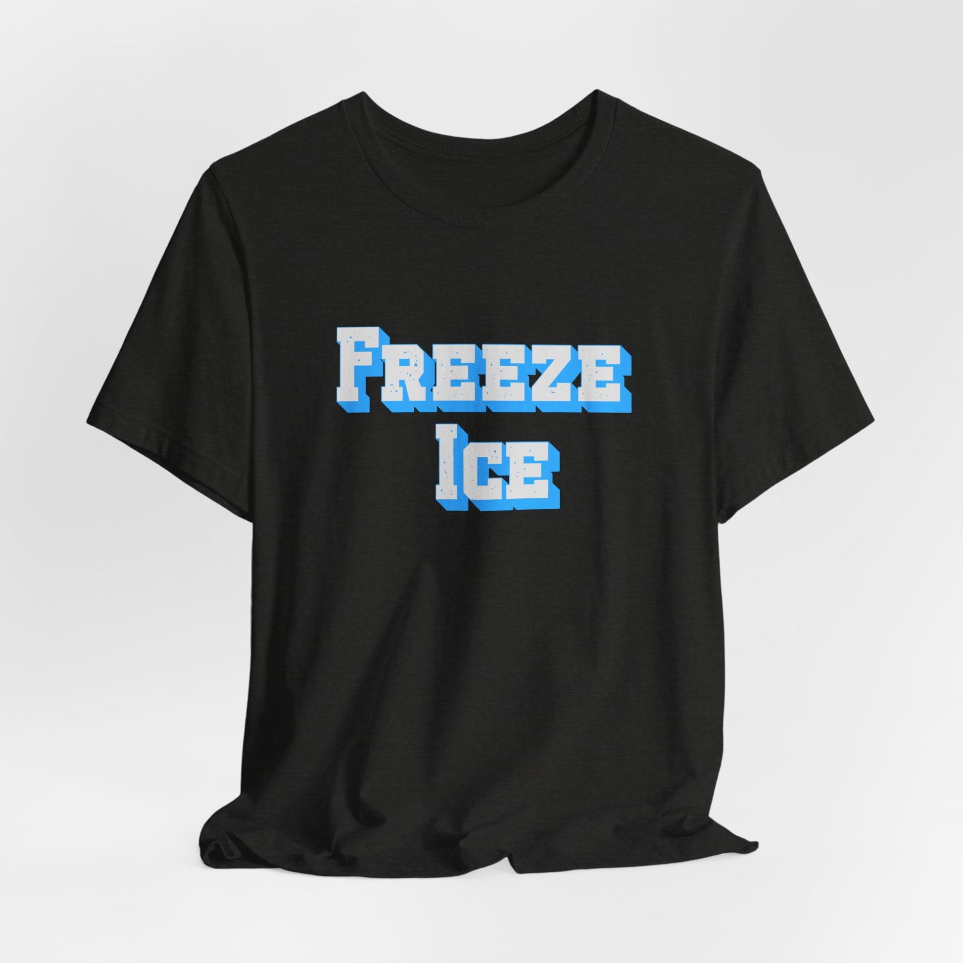 Soft, breathable tee with a bold, retro-inspired “Freeze Ice” graphic that feels playful and a little nostalgic. Lightweight Airlume cotton keeps you cool while the ribbed crew neck and side seams hold the silhouette neat through daily wear. Wear it layered under a flannel for chilly mornings or solo when you want a casual, confident look that reads fun and easygoing. The printed label and sleeves are crisp and detailed, so the quality details match the shirt’s cheerful attitude.