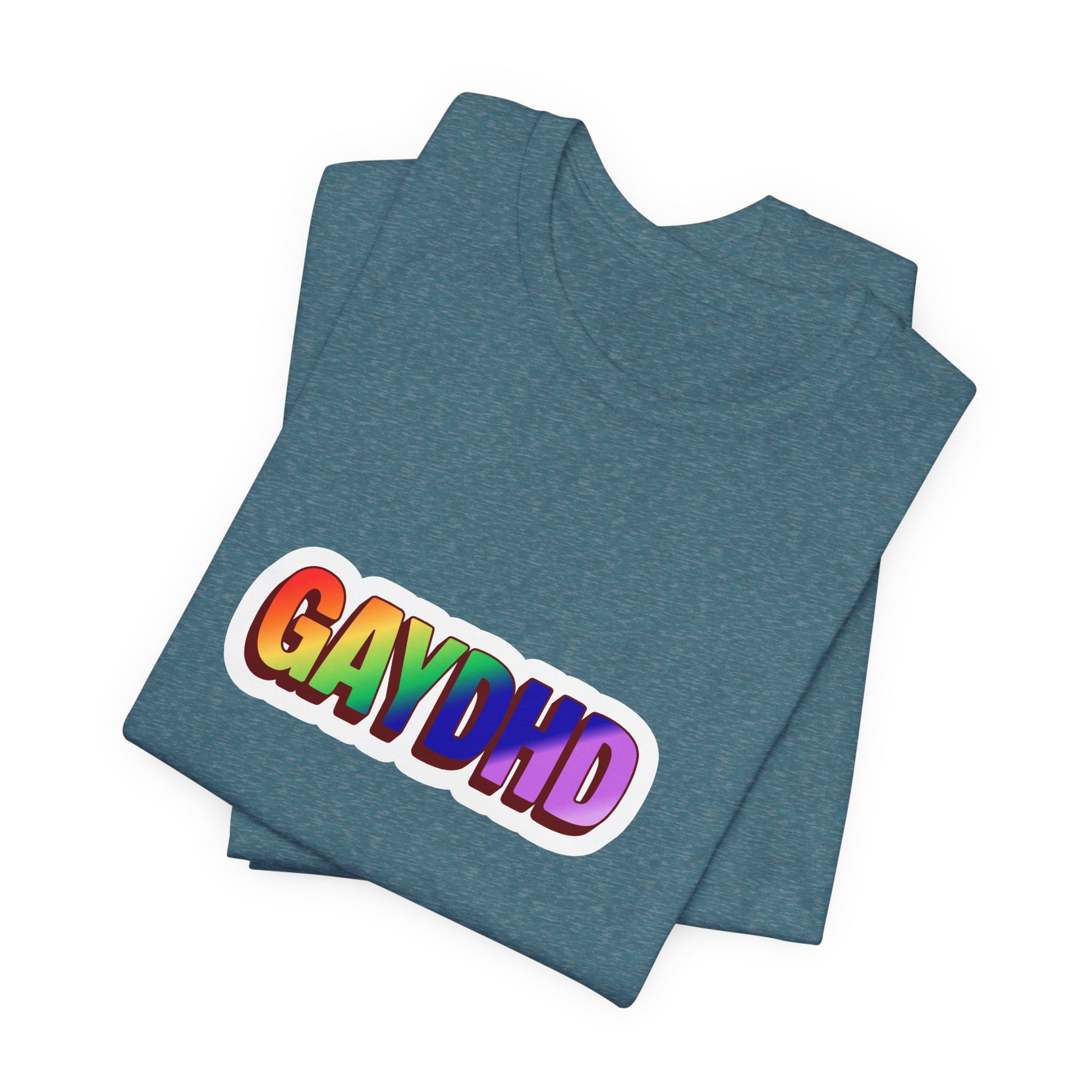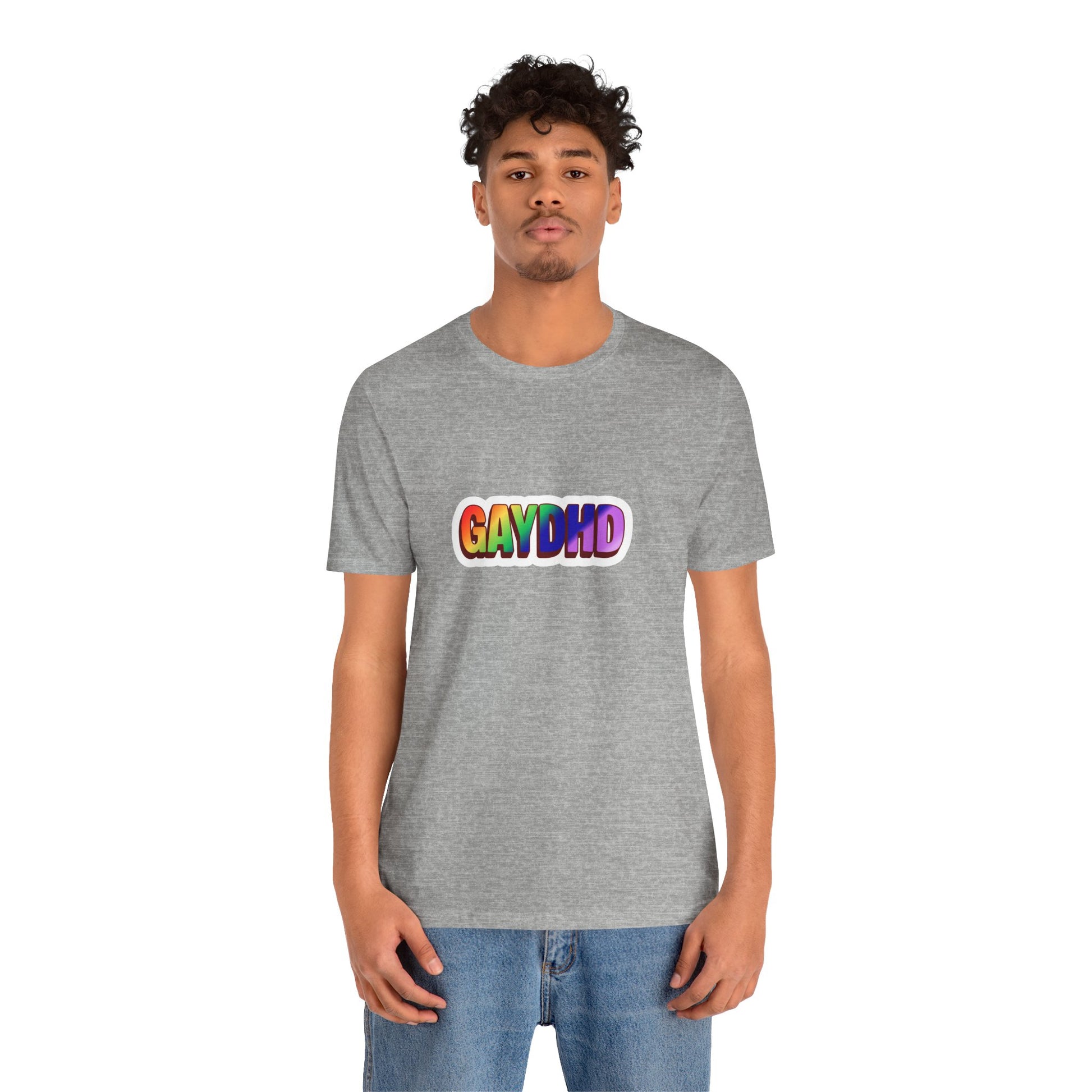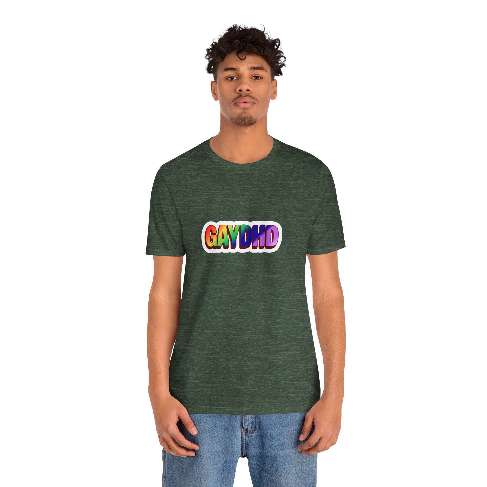 This lightweight crew neck tee brings bright, playful pride to everyday wear. The short-sleeve silhouette sits neat and casual, while a bold, rainbow-hued wordmark centered on the chest reads loud and proud, "hello, I am here, I am queer, and I will not remember your name in 5 minutes". Soft Airlume combed and ring‑spun cotton feels breathable against the skin and layers easily under jackets or over long sleeves. Small details — ribbed knit collar, shoulder tape, and side seams — keep the shirt looking sharp after many washes. Wear it to shows, marches, house hangs, or city strolls: it settles into your rotation as an honest piece of self‑expression that’s comfortable enough to live in.